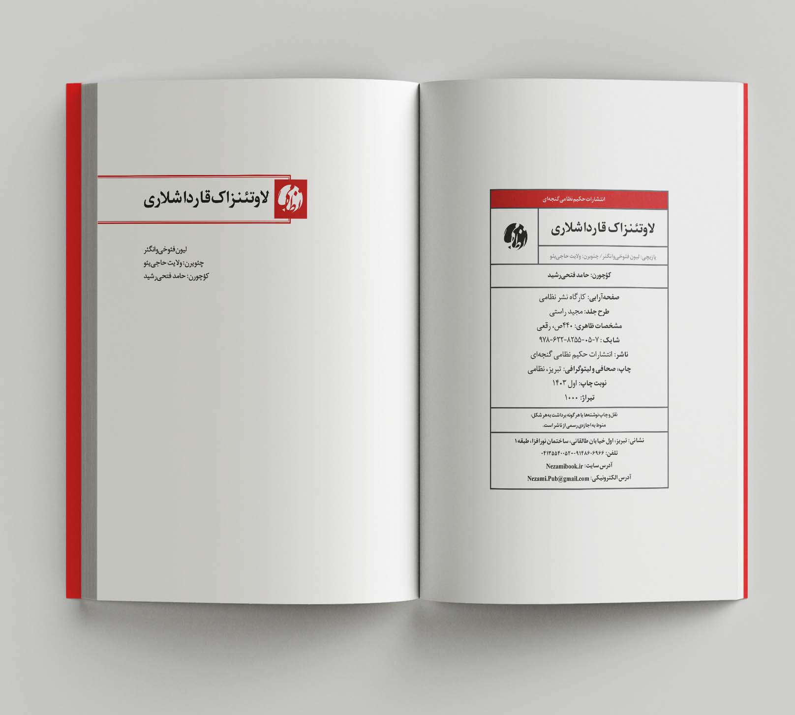 ‏عنوان و نام پديدآور : لاوتینزاک قارداشلاری/لیون فئوخی‌وانگئر ؛ کؤچورن حامد فتحی‌رشید.